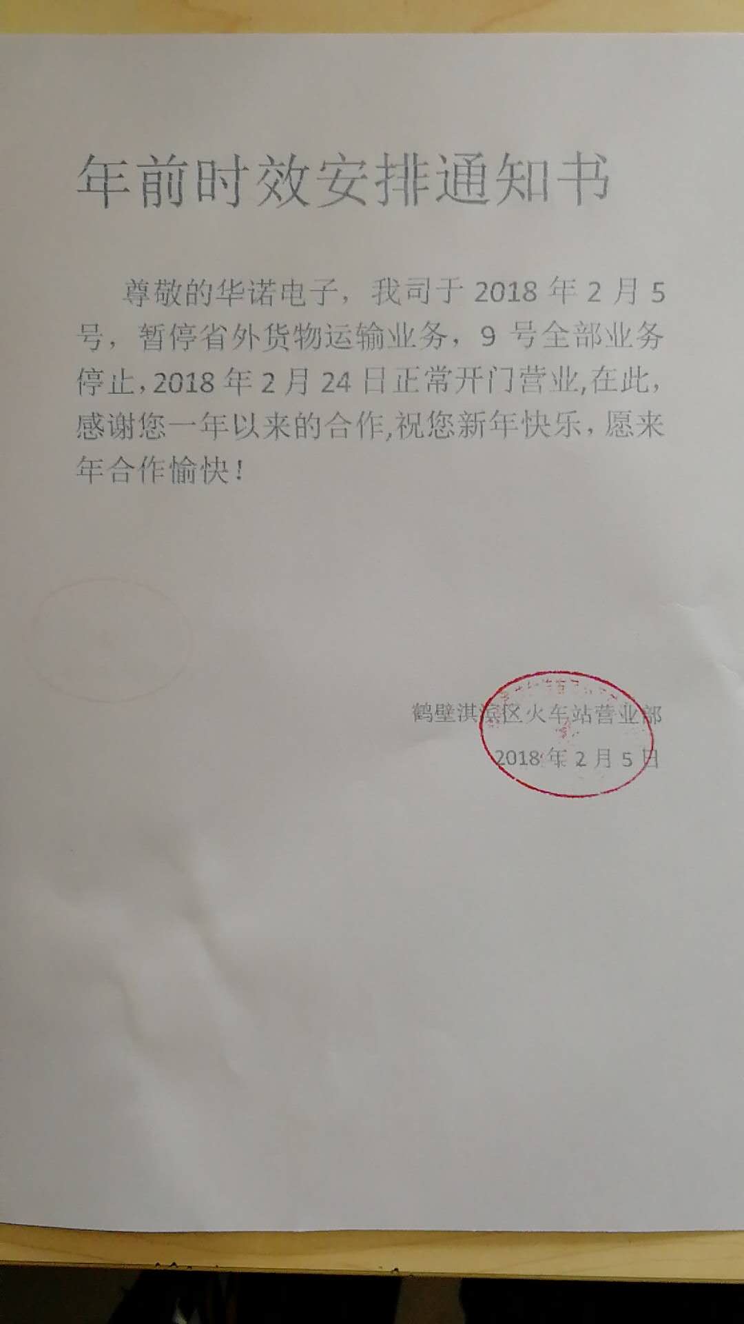 以上物流停止接貨當日及當日以后發出的貨物,我司不能保證正常的運輸到貨時效。
