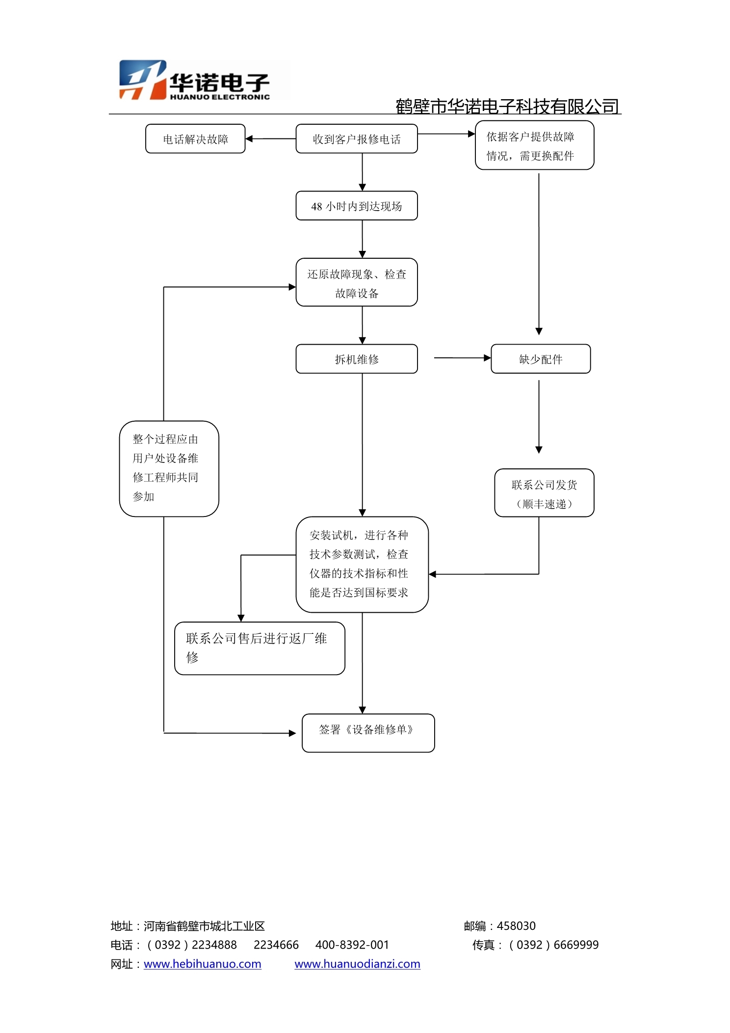 為規(guī)范售后服務(wù)工作,滿足用戶的的需求,保證用戶在使用我公司產(chǎn)品時(shí),能發(fā)揮大的效益,提高用戶對(duì)產(chǎn)品的滿意度和信任度,提高產(chǎn)品的市場(chǎng)占有率,制定售后服務(wù)維修流程圖流程。如在使用過程中出現(xiàn)問題請(qǐng)及時(shí)聯(lián)系廠家。24小時(shí)服務(wù)熱線:400-8392-001